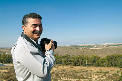 עמיר פרץ, שר הבטחון, מצלם את בית חנון (צילום: מאיר אזולאי)