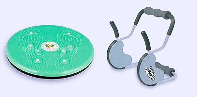 בקטן (משמאל): דיסק "טוויסטר". צלחת סיבובית לעבודה רצחנית. יעילה בעבודה על אזור הבטן, המותניים והישבן כבונוס. המכשיר יעיל לאנשים שאינם יכולים או לא רוצים לבצע כפיפות בטן והוא עובד על שרירי הבטן האלכסוניים, הבטן התחתונה, שרירי הישבן ושרירי הגב התחתון. הוא קטן וקל משקל, וניתן לנשיאה בתיק צד. 59.90 שקל ברשת ספורט ורטהיימר.