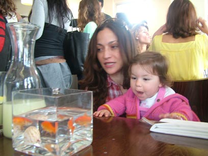 אורנה פיטוסי לימדה את תמרי בת השנה ושלושה חודשים מה ההבדל בין דגי זהב ותכשיטים מזהב באירוע של "ה. שטרן"