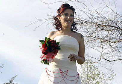 לחנות וביקשנו זר ורדים וגיבסנית עטוף בנייר קרפ לבן. לאחר ששילמנו 70 ש"ח אמרה המוכרת: 'וואי, זה ממש כמו זר כלה', ואז אמרתי: 'נכון, אני הכלה'".