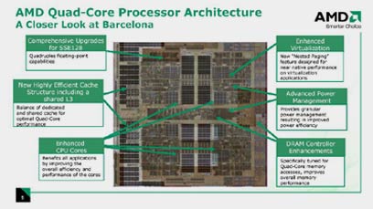 ארכיטקטורת ארבע-הליבות של המעבד Phenom, מתוך מצגת של AMD. באדיבות HWZone