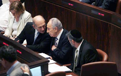 שלושה קולות מהמשכן. לשמעון פרס חסרו שלושה קולות בסיבוב הראשון כדי להיות הנשיא הבא של מדינת ישראל. פרס קיבל בסיבוב הראשון לנשיאות המדינה שנערכו בצהריים (יום ד') 58 מקולות הח"כים, ראובן ריבלין קיבל 37 וקולט אביטל - 21. שלושה מחברי הכנסת הטילו פתקים לבנים וקול אחד נפסל. קולט אביטל הודיעה שתפרוש מהמירוץ, וסביר שקולות העבודה יילכו בעיקר לפרס.