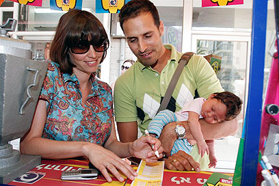 הנה אחת שממש לא יזיז לה אם היא תיקח חמישים מיליון שקלים ישר לכיס בהגרלת הלוטו הקרובה: קוראים לה מיה, היא בת 40 יום, ובזמן שההורים שלה, איזבל אדלר ואורן סימן טוב ניסו לארגן לה קופת חיסכון רצינית, היא העדיפה להעביר את הזמן בחלומות אחרים. אמא שלה ציינה שחמש זה המספר שהכי עושה לה את זה, ודאגה לשבץ אותו בטורים.