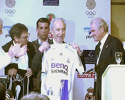 גונב סמל קטאלני. הנשיא קלדרון עם הנשיא פרס (צילום: אוהד קינר)