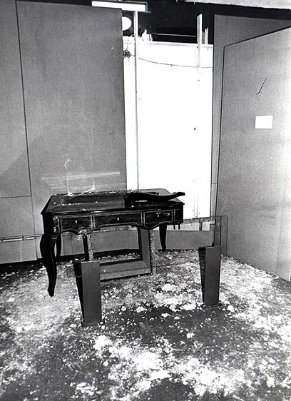 ניצב יחזקאל קרתי ותת ניצב רחמים קומפורט עמדו במבנה דמוי המבצר של מוזיאון האיסלאם שותקים והמומים. הם הביטו בדממה אל אגף השעונים, שהיה עכשיו ריק למחצה. קומפורט טיפס על כסא, התמתח, והביט בסורגים המנוסרים של חלון האוורור. "אריה יערוף לנו את הראש בגלל זה", הוא אמר.