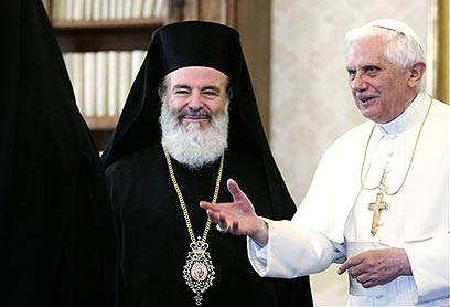האפיפיור בנדיקטוס ה-16 והארכיבישוף כריסטודולוס (צילום: AP)
