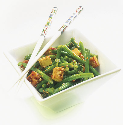 שעועית ירוקה עם טופו ושומשום