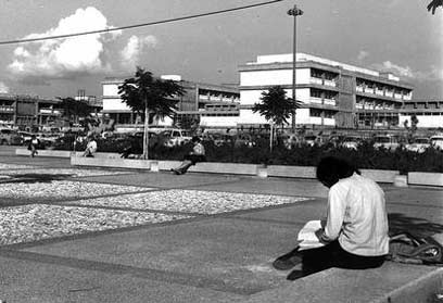 החידה החדשה מביאה תצלום ישן יותר של מבנה חדש יותר. היכן יושבים האנשים האלה להפסקת קריאה?