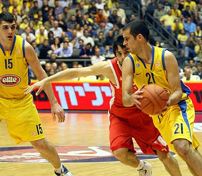 יותם הלפרין מול אולימפיאקוס. עובר מצהוב לאדום (צילום: אלי אלגרט)