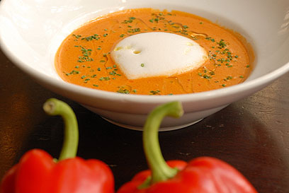 יפה, טעים וחם. מרק כתום עם קרם פרש (צילום: אורן שלו)