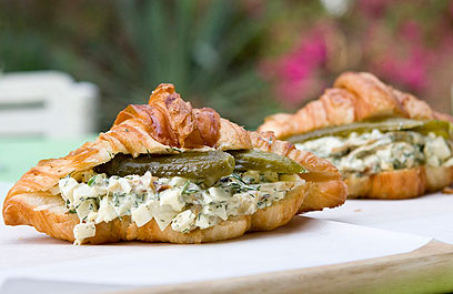 - קרואסון במילוי סלט ביצים עם מלפפון חמוץ.