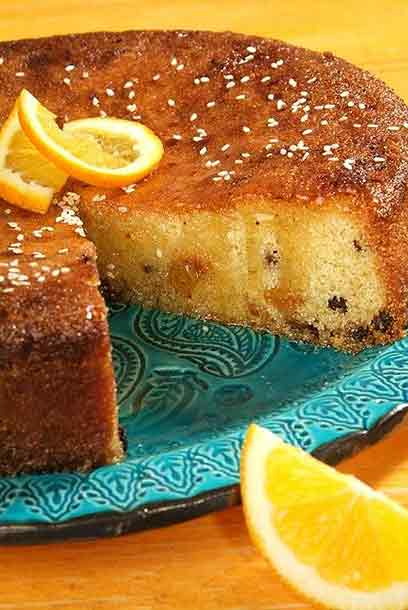- הסירופ: מבשלים את הסוכר, המים ומיץ הלימון בסיר במשך כ-30 דקות. יוצקים את הסירופ על העוגה בעודה חמה. מעטרים בפלחי תפוזים וזורים מעט זרעי שומשום.