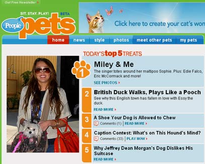 PeoplePets, אתר-בת של מגזין פיפל, הוא פורטל מקסים באנגלית שאפשר לגלוש בו גם עם הילדים. העיצוב קליל, מסוגנן, כייפי ונוח, אבל כדאי להירשם כדי ליהנות מכל התכונות. באתר יש כתבות ותמונות של סלבריטאים והחיות שלהם, העיירה האנגלית שהתאהבה בברווזה שמשוכנעת שהיא כלבה, נעליים מיוחדות ללעיסה עבור הכלב וכל מיני דברים חמודים בסגנון. יש גם משחקים - לבחור את החיה החמודה מבין כל צמד תמונות, לבחור כיתובים מצחיקים לתצלומים של חתולים עם הבעות פנים מעניינות וכו'.