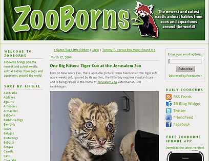 קחו למשל את סילבסטר, גורון הטיגריס המתוק שנולד בגן החיות בירושלים ומביא למדינה כבוד יותר מאיזה שער או שניים בספורטס אילוסטרייטד. סילבסטר צולם בגיל 6 שבועות, אחרי שאימו נטשה אותו והוא עבר לטיפול על-ידי הווטרינרית נילי אבני מגן. יש לצפות בתמונות ולקבוע אותן מיידית כטפט לשולחן העבודה.
