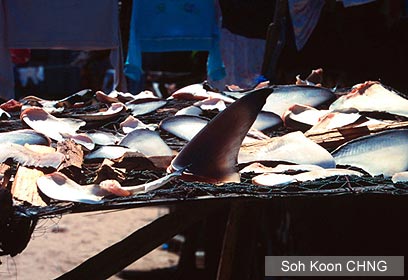 הכרישים ניצודים בעבור סנפיריהם ומושלכים לים