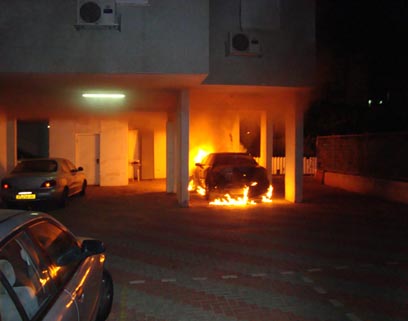הצתת מכונית של מקורב למשפחת אבוטבול בנתניה (צילום: שניאור רוזנברג)