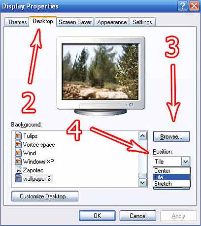 4. תחת הכותרת Position יש לבחור ב Tile (ראו תמונה) וללחוץ OK.