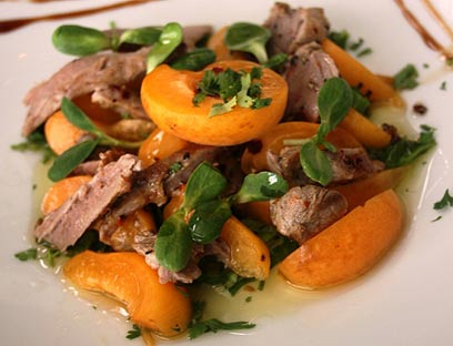 השף אבי ביטון ממסעדת "אדורה" מנצל את עונת המשמשים הקצרה ומגיש חגיגה כתומה - סלט עוף, משמשים ממולאים, מרק של משמשים וקינוח של משמש בקרמל ותבלינים עם גנאש בניחוח הל