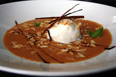 מרק משמשים עם גרניטת שקדים