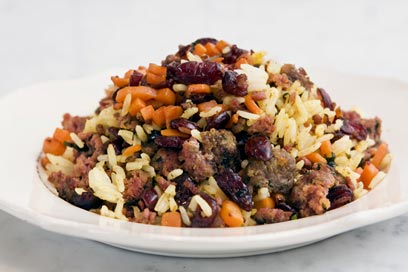 4. מערבבים את תערובת הבשר, גזר וחמוציות עם האורז, טועמים, מתקנים תיבול במידת הצורך ומגישים חם.