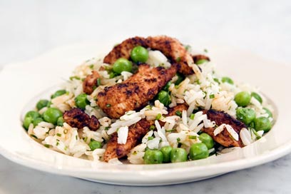 אורז ירוק עם אפונה ונתחי חזה עוף