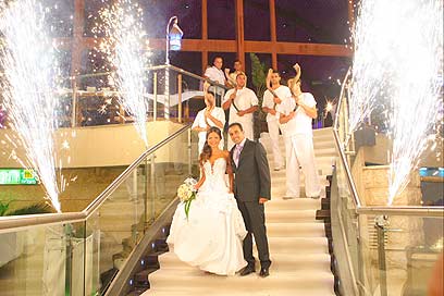 השניים נכנסו לחופה בליווי זיקוקי דינור ולהקת מתופפים, כשמצידי המוטות עומדים גיא גיאור, אריק אלפר, מירית וקנין, איגור טיגנר, דיווה חתמי, מעיין פורטר, סיון ראוך ואפילו יואב כספי שעשה את כל הדרך מלונדון. בהמשך הערב התחלפה השמלה של מירקין למשהו קצת יותר נוח ושקוף. באווירה חגיגית זו מסתיימות 15 דקות התהילה. מזל טוב.