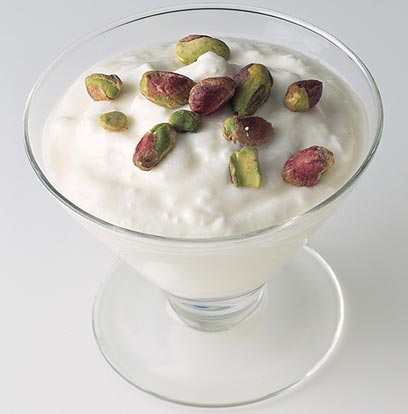 - בוזקים על כל מנה פיסטוק חלבי ומגישים.