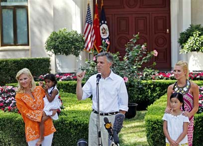 הונטסמן עם חלק ממשפחתו, במעונו החדש בבייג'ינג (צילום: AP)