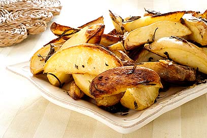 פלחי תפוחי אדמה אפויים עם מרווה, טימין, רוזמרין ושום