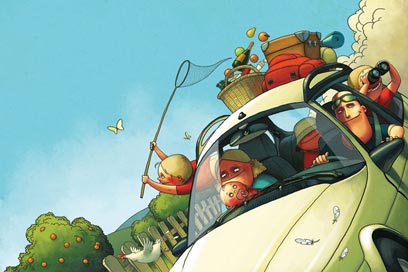 קצת על הנפשות הפועלות. את סיון כבר הכרתם. היא בלונדינית; אולי בגלל זה היא נוהגת יותר טוב מרוב הגברים שהכרתי. זה חשוב, כי עוד מעט נדבר על רכב. נוי וגוני הם תאומים בני עשר. הם גם די בלונדיניים. אני לא אביהם הביולוגי. יש להם אבא מקסים ואוהב שהוא אחלה גבר והיה נשוי לסיון לפני, ואנחנו מגדלים אותם ביחד מאז שהיו בערך בני שלוש. אלי היא בת ארבע וחצי. לירי היה בן חצי שנה כשיצאנו לחופשה, והיום הוא קצת יותר.