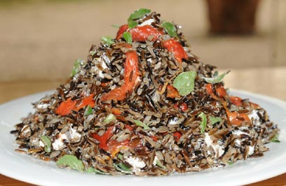 סלט אורז בר עם פלפלים קלויים, פטה ואורגנו