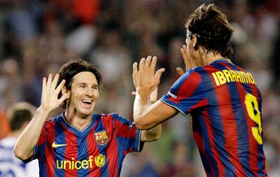 איברהימוביץ' ומסי. בינתיים דינמו קייב מחכה לצמד (AFP)