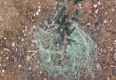 "במרכז המחקר, הממוקם בעצמו על התפר שבין אזור ירוק לאזור מדברי בהרי יהודה, בדקנו מספר אפשרויות לניצול מי הטל", מסביר בשיחה עם ynet ד"ר קטרון. בין שלל האפשרויות שנבדקו, זו שהראתה תוצאות מקסימליות וגם פגעה הכי פחות בסביבה - היתה פיזור סלילים של "חוט דיג" מסביב לבסיסי השתילים. "הסלילים הם בעלי שטח הפנים הרב ביותר ולכן מאפשרים לכלוא כמות מקסימלית של מים".