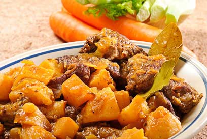 - כשהבקר רך מוסיפים את תפוחי האדמה המטוגנים ומבשלים 20 דקות נוספות. במידה שחסרים נוזלים מוסיפים עוד כוס מים רתוחים.