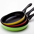 המחבת מגיעה בשלושה גדלים ומגוון צבעים זוהרים: ירוק, צהוב, אדום.