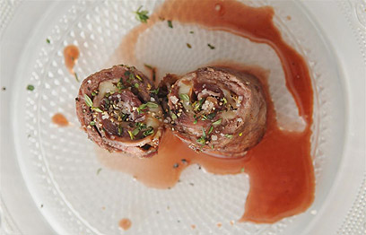 לרולדה:500 גרם סינטה עגל, נקייה משומן וגידים ופרוסה לפרוסות של כ-80 גרם
