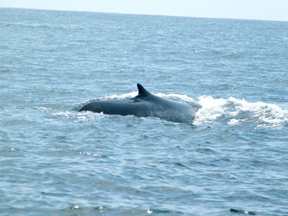 בארבע השעות הבאות ראיתי יותר מעשרה לווייתנים כחולים, וכל הזמן רצו לי בראש סרטי הטבע האלה שמסבירים שהלשון שלהם היא בגודל של פיל, הלב בגודל של מכונית, וחלק מכלי הדם כל כך רחבים שאדם יכול לשחות בתוכם. הגראנד פינאלה היה זכר ענק שנשף את תכולת ריאותיו שלושה מטרים מאחורי הסירה, והמשיך לשחות על פני המים מאיתנו והלאה.
