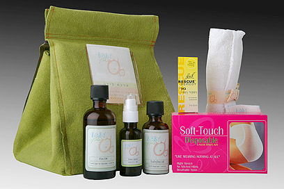 - תיק לידה בסיסי ב-49 שקל, שמכיל שמן שקדים, חבילת תחתוני רשת חד פעמיים, פדים הגיינים, 4 רפידות הנקה, שמן סטיטול, סבון אנטיספסטי ושני בקבוקים ריקים קטנים למילוי.