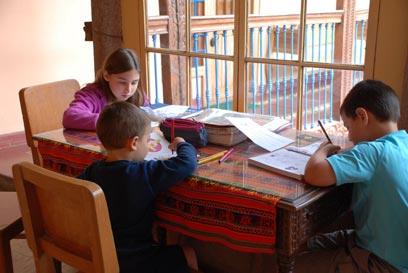 טל ולילך דאגו מראש שהילדים לא ישתעממו בדרכים הארוכות ובנסיעות האינסופיות באוטובוס. "לקחנו תרמיל עם ספרי הפעלה באנגלית, חשבון, ספרדית ועברית. ישבנו איתם במלונות ובהוסטלים, הגדרנו חצי יום שמוקדש ללימודים ופשוט עשינו את זה כמו ב'חדר'", מספר טל.
