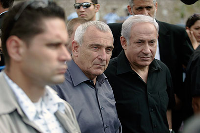 נתניהו ואהרונוביץ' בלוד, הבוקר (צילום: אורי לנץ)