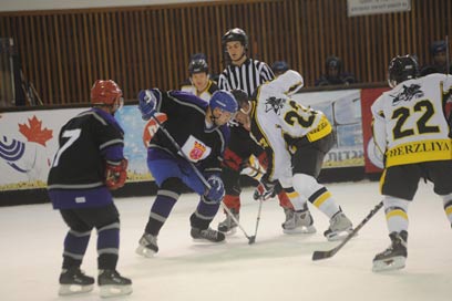 ניסן עומד בנקודת העונשין. שופט מניח את הפּאק, דיסקית הגומי, בין ניסן לשחקן מהקבוצה היריבה. המקלות שלהם נתקעים אחד בשני. ניסן מצליח להעביר את הדיסקית לקולגה שלו, שמיד מרחף על הקרח ומחזיר אותה אחורה לניסן. ניסן מרחף גם הוא, עושה סיבוב במקום, מטעה את היריב שמולו ושועט לכיוון השער. ברגע שהוא מתקרב לקיר המגרש, שחקן נגדי נתקל בו ומועך אותו. שחקן אחר מצטרף ויש ערמת שחקנים על ניסן, שהדיסקית כבר מזמן לא אצלו: שחקן אחר מהקבוצה שלו כבר שולח אותה בטיל לכיוון השער. השוער חוטף את הדיסקית במרכז הגוף, ומשאיר אותה לשחקן מקבוצתו שישעט לכיוון הצד השני. וככה שוב ושוב. בלי הפסקה. לא פלא שהקהל - המורכב ממני, מהחברה שלי ומשני רוסים שצועקים "יבגני, דוואי!" - יוצא מגדרו מרוב התלהבות.