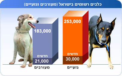 למעלה מ-387,289 אלף כלבים חיים רשומים כיום באתר המרכז הארצי לרישום כלבים במשרד החקלאות, שחושף גם השנה סדרת נתונים על ההולכים על ארבע בישראל. מתוך נתוני המשרד עולה כי תושבי המדינה עדיין מעדיפים לאמץ כלב זכר מאשר נקבה ומרבית הסיכויים שהוא יהיה גזעי ולא כלב מעורב.
