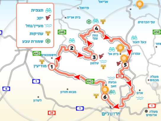 מפת הסיור בחבל בנימין