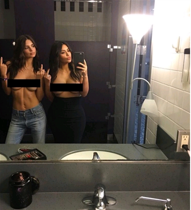 השתיים העלו לחשבונות האינסטגרם שלהן את התמונה המשותפת, אך בזמן שקים הסתפקה במילים מועטות וכתבה שלשתיהן "אין מה ללבוש", אמילי ניסתה להעניק לסלפי ניחוח של גירל פאוור. "יש בנו יותר מרק גוף", כתבה בעודה טופלס, "אבל זה לא אומר שאנחנו צריכות להתבייש במיניות שלנו". צודקת חמודה, אתן צריכות להתבייש בבחירת הלוקיישן לתמונה. אאוץ'.
