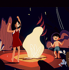 "גם אני ואחי היינו הופכים את הבית לאוהל גדול, מתחפשים לדמויות, משתמשים במיטות", היא מספרת לאנה. "כשהיינו אצל סבתא שלי, תמיד היינו לוקחים בגדים, מתחפשים ומדמיינים שאנחנו בעולם אחר, בג'ונגלים, במדבר. אלה החלומות והפנטזיות של כל ילד – הבריחה מבית קטן למשהו שונה. יש בזה מין חופש, ללכת ביחד למקום שהוא רק שלי ושל אחי, והמבוגרים לא יבינו. המקום הזה מאוד ריגש אותי. אנחנו חיים בעולם מסוכן, אבל אני האחות הגדולה שיכולה לשמור על אחיה הקטן".