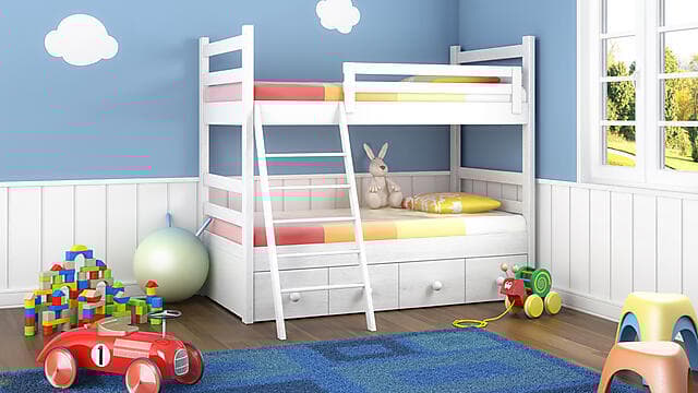 מיטת קומתיים - מיטת הקומתיים היא פתרון נפוץ ויעיל לחדרים משותפים. כשיש צורך בשולחן כתיבה, למשל, עדיף לחסוך בשטח של הרצפה ולמקם מיטת קומתיים. זכרו לחנך את הילדים להיזהר בזמן הטיפוס והירידה מהמיטה.
