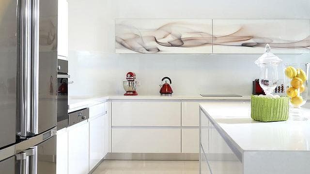 זיו-דנינו: "זכוכית מגיעה לרוב בגוון מבריק, אבל ניתן להזמין אותה גם בגוון מאט. רוב הישראלים מעדיפים זכוכית ללא הדפסים, והם יחסית שמרניים וחוששים שההדפס יימאס עליהם אחרי תקופה. אם כבר מוסיפים הדפס זה לרוב הדפס אבסטרקטי של כתמי צבע, ולרוב רק בשתי ארונות עליונים במטבח. החיסרון של זכוכית הוא שעלותה גבוהה יותר ביחס לשאר החזיתות, ובהשוואה ליתר החומרים היא יותר פגיעה לאורך זמן".
