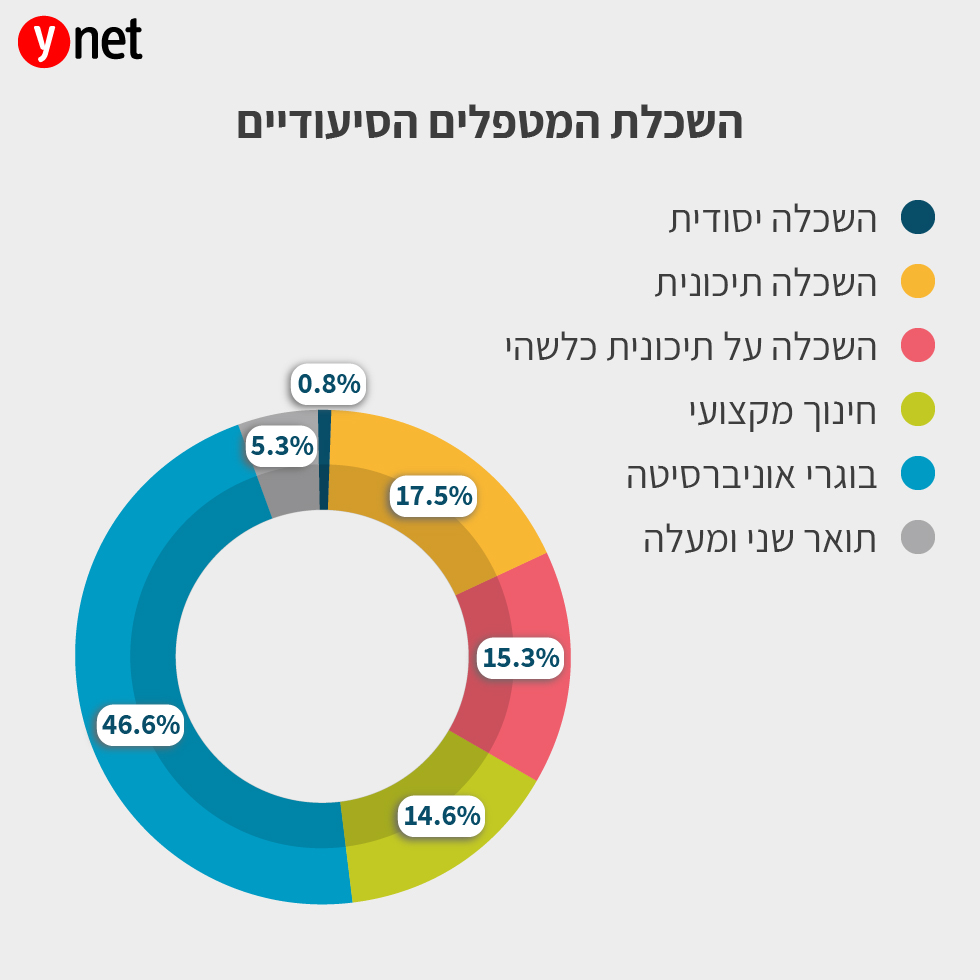 על פי ממצאי הסקר, 47.3% מהמטפלים הם בגילאי 40-31, 25.3% בגילאים 50-41 ו- 19.6% בגילאים 30-20. אך ממצא נוסף ומפתיע מגלה כ-46% מהמטפלים הזרים הינם בוגרי אוניברסיטה, 15% נוספים למדו במכללה כלשהי ו-5.4% בעלי תואר שני ומעלה.