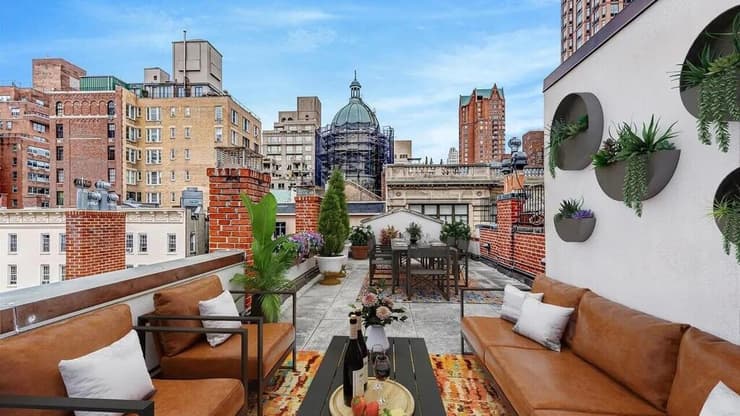 בקומת הרחוב משתרעת גלריה דרמטית בגובה כמעט שבעה מטרים המחוברת למוסך לשלוש מכוניות – מחזה נדיר בלב מנהטן. מעליה, בקומה השנייה, חדר ביליארד וסוויטה קטנה עם מרפסת, בקומה השלישית מטבח שף מצויד במותגי יוקרה המחובר ישירות לחדר האוכל ולסלון סולאריום מואר הפתוח לגינה דרומית עטורת קיסוס. בקומה הרביעית שני חדרי שינה עם אח ושני חדרי רחצה מלאים, ואילו כל הקומה החמישית מוקדשת לסוויטת הורים רחבת ידיים עם שני חדרי ארונות, מטבחון פרטי, אח בעירה וחדר רחצה מפואר הכולל ג’קוזי ומקלחת זוגית – עם יציאה ישירה לגג.