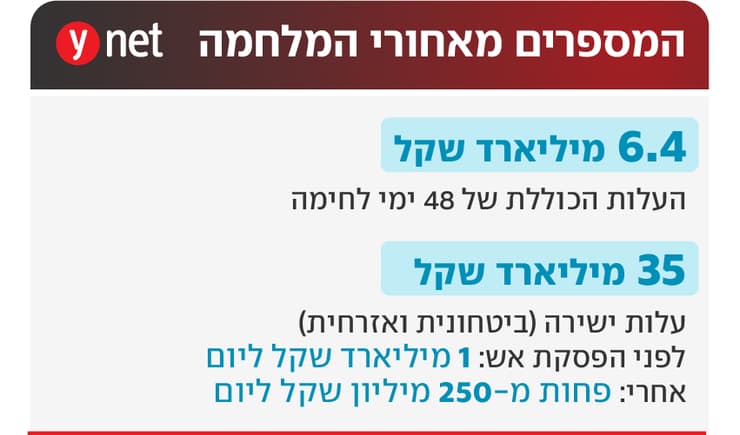 גורם בכיר במשרד האוצר ציין בשיחה ל"ממון" ול-ynet כי הכוונה היא לעשות שימוש לפי שעה רק ברזרבה של 8 מיליארד שקל, שהועמדה בתקציב שנת 2026 לצורכי הביטחון בלבד, "ולהמתין לחישובים הסופיים, לפי המצב הביטחוני ושמירת הפסקת האש לאורך זמן, בהעברת כספים נוספים למערכת הביטחון, שעליה קודם כל להתייעל ולגייס פחות חיילי מילואים, כפי שנקבע במסמך תקציב המדינה שאישרו הממשלה והכנסת".